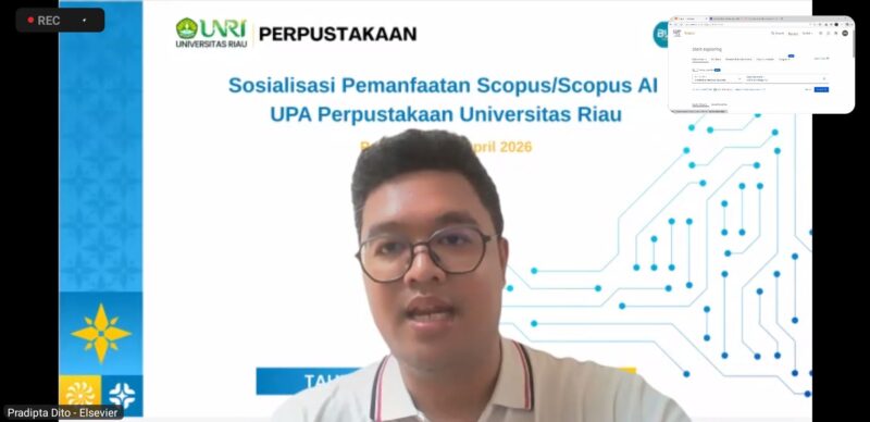Unrinews. Universitas Riau (Unri) melalui Unit Penunjang Akademik (UPA) Perpustakaan selenggarakan Sosialisasi Pemanfaatan Scopus, Selasa (28/4/2026) secara daring. Kegiatan ini diikuti oleh ratusan peserta dari kalangan dosen, tenaga kependidikan, dan mahasiswa di lingkungan Unri. Sosialisasi ini merupakan bagian dari upaya Unri dalam meningkatkan visibilitas dan reputasi global institusi, sekaligus mendukung pemetaan riset serta analisis kompetitif...Read More