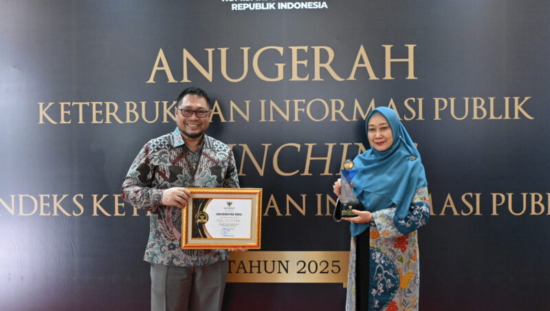 Unrinews. Rektor Universitas Riau (Unri), Prof Dr Sri Indarti SE MSi menerima penghargaan di tingkat nasional dengan meraih Penghargaan Keterbukaan Informasi Publik dari Komisi Informasi Pusat (KIP) dengan predikat Informatif dengan nilai 96.52. Penghargaan ini diserahkan langsung oleh Syawaludin selaku Komisioner Bidang penyelesaian Sengketa Informasi kepada Rektor Unri pada Senin, 15 Desember 2025, yang bertempat...Read More