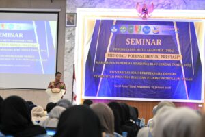 Unrinews. Dalam rangka meningkatkan mutu akademik, Universitas Riau (Unri) melaksanakan kegiatan seminar Peningkatan Mutu Akademik (PMA) bagi mahasiswa penerima beasiswa prestasi ” Riau Cerdas ” angkatan 2022 dan 2023.