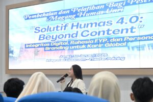 “Di era humas 4.0 mahasiswa magang diharapkan tidak hanya mampu memproduksi konten, tetapi juga memiliki integritas digital, etika komunikasi, serta pemahaman strategis dalam membangun citra institusi” ujar beliau.