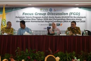 Unrinews. Dalam rangka meningkatkan akuntabilitas tata kelola organisasi, Lembaga Penelitian dan Pengabdian Masyarakat (LPPM) Universitas Riau (Unri) menyelenggarakan kegiatan Focus Group Discussion (FGD) Petunjuk Teknis Program Kuliah Kerja Nyata (Kukerta) Berdampak dan Penyerahan Rencana Kerja dan Anggaran Kementerian Negara/Lembaga (RKA-KL) Tahun 2026.