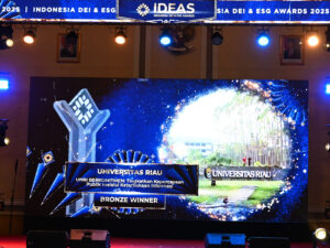 Unrinews. Universitas Riau (Unri) kembali mencetak prestasi membanggakan di kancah nasional dengan meraih tiga penghargaan bergengsi dalam ajang The 4th Indonesia DEI & ESG Awards (IDEAS) 2025 yang diselenggarakan oleh PR INDONESIA Group. Ajang ini menilai praktik terbaik dalam program komunikasi/Kehumasan strategis dan tata kelola berbasis nilai Diversity, Equity, Inclusion (DEI) dan Environmental, Social, Governance (ESG) dari berbagai instansi di Indonesia.