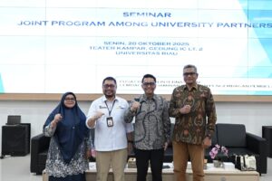 Unrinews.Dalam rangka meningkatkan kerja sama internasional dan memperluas kolaborasi akademik antar institusi pendidikan tinggi, Universitas Riau (UNRI) melalui Pusat Urusan Internasional Lembaga Penjamin Mutu dan Pengembangan Pembelajaran (LPMPP) menggelar Seminar “Joint Program Among University Partners”, yang berlangsung di Teater Kampar, Gedung Islamic Center Lt.2, Universitas Riau (20/10/2025).