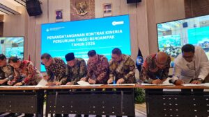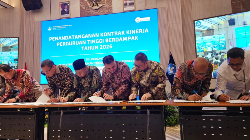 Unrinews. Wujud komitmen sebagai Perguruan Tinggi Berdampak, Universitas Riau (Unri) melaksanakan penandatanganan kontrak kinerja tahun 2026 dengan Kementerian Pendidikan Tinggi, Sains dan Teknologi (Kemdiktisaintek) di Graha Diktisaintek pada Senin (05/01).