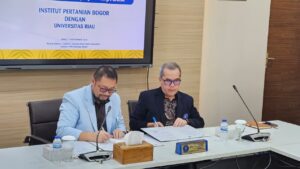 Penandatanganan berlangsung di Kampus IPB Dramaga Bogor ini dihadiri pimpinan dari kedua perguruan tinggi. Unri diwakili oleh Wakil Rektor bidang Perencanaan, Kerja Sama, dan Sistem Informasi, Dr Ir Sofyan Husein Siregar MPhil sementara IPB diwakili oleh Wakil Rektor Bidang Konektivitas Global, Kerja Sama, dan Alumni, Prof Dr Iskandar Z Siregar.