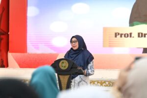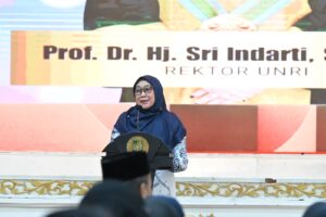 Unrinews. Rektor Universitas Riau (UNRI) Prof Dr Sri Indarti SE MSi didampingi Wakil Rektor Bidang Keuangan Dr Yuana Nurulita SSi MSi PhD menghadiri kegiatan Launching Program Gerakan Mahasiswa Peduli Stunting Anak Riau (GEMPITA RIAU) dan Penandatanganan Kerja Sama antara Tim Penggerak PKK Provinsi Riau dengan 15 Perguruan Tinggi se-Provinsi Riau, yang digelar di Balai Serindit, Gedung Daerah Provinsi Riau (16/10/2025)