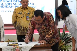 Selain menghadiri kegiatan penandatanganan, Wakil Rektor Bidang Akademik, Dr Mexsasai Indra SH MH juga memberikan paparan mengenai berbagai kegiatan yang telah dilakukan oleh Universitas Riau dalam mendukung program P4GN di lingkungan kampus.