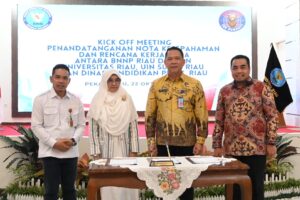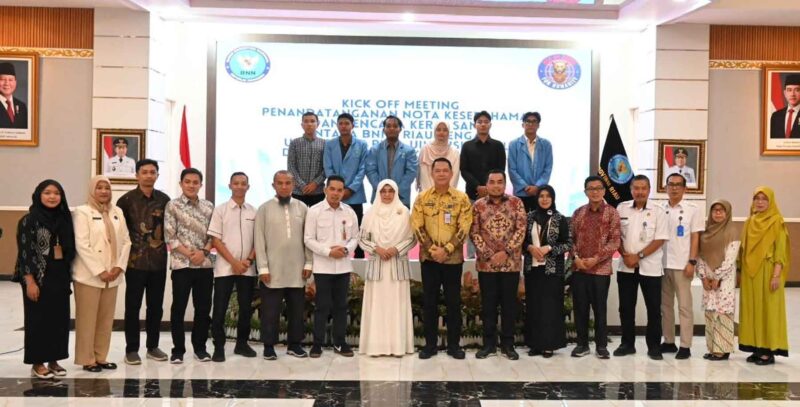 Dalam kesempatan tersebut, UNRI bersama para mitra menandatangani nota kesepahaman sebagai bentuk komitmen bersama dalam memperkuat sinergi pencegahan penyalahgunaan narkoba di kalangan mahasiswa dan tenaga pendidik.