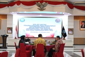 Unrinews. Rektor Universitas Riau (UNRI) Prof Dr Hj Sri Indarti SE MSi yang diwakilkan oleh Wakil Rektor Bidang Akademik, Dr Mexsasai Indra SH MH menghadiri kegiatan Kick Off Meeting penandatanganan nota kesepahaman dan rencana kerja sama antara Badan Narkotika Nasional (BNN) Provinsi Riau dengan Universitas Riau (UNRI), Universitas Islam Negeri Sultan Syarif Kasim (UIN Suska) Riau, serta Dinas Pendidikan Provinsi Riau.