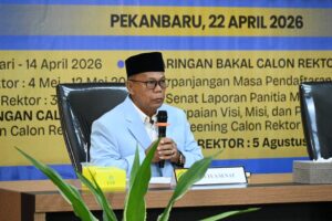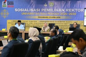 Unrinews. Universitas Riau (Unri) melaksanakan kegiatan Sosialisasi Pemilihan Rektor (Pilrek) Periode 2026–2030 pada Rabu (22/4/2026) bertempat di Ruang Indragiri, Gedung Rektorat Universitas Riau.