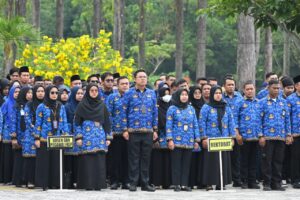 Unrinews. Universitas Riau (Unri) melaksanakan upacara peringatan Hari Pahlawan tahun 2025 di Halaman Rektorat pada Senin (10/11).