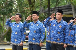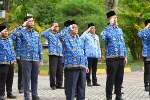 Kegiatan upacara berlangsung lancar, khidmat dan penuh semangat nasionalisme, dihadiri oleh jajaran pimpinan dan sivitas akademika Unri. (Masrizal, foto:Nico).